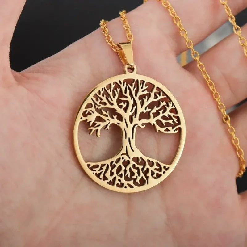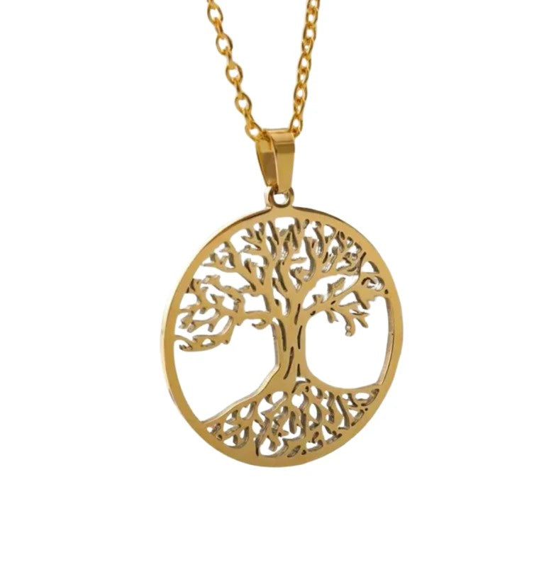 Šī kaklarota ir izgatavota no augstas kvalitātes 316L ķirurģiskā tērauda, kas ir pārklāts un izturīgs pret rūsu. Rotaslietas ir dekorētas ar veiksmes koka motīvu, piešķirot tām īpašu nozīmi.