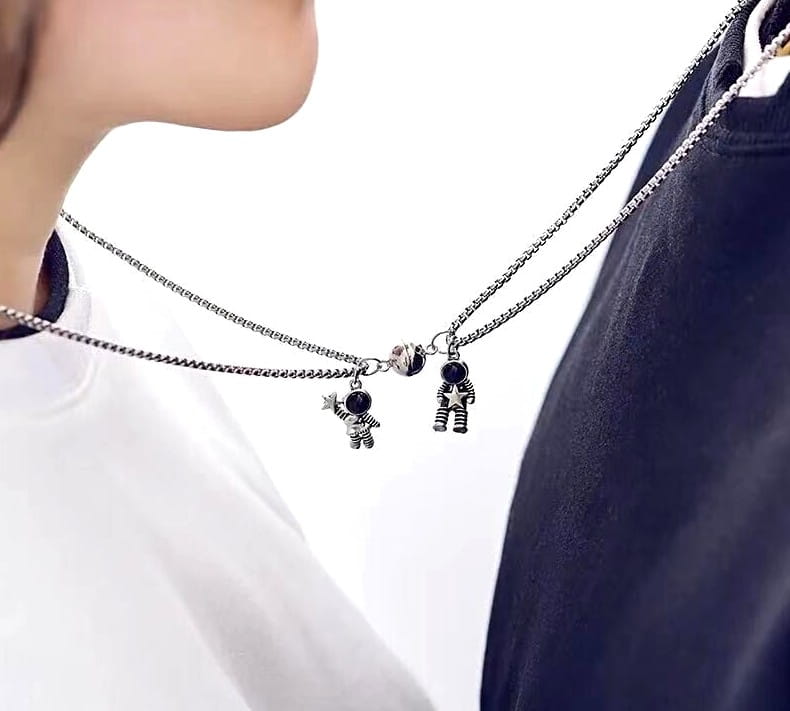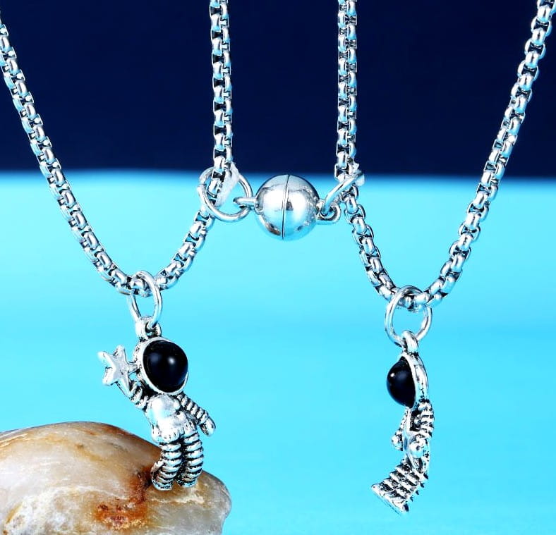 Šis divu kaklarotu komplekts ir lieliska izvēle pāriem vai draugiem, kuri vēlas paust savu tuvību. Kaklarotas savieno magnēts, kas smalki piekārts pie ķēdītēm, piešķirot tām īpašu nozīmi.
