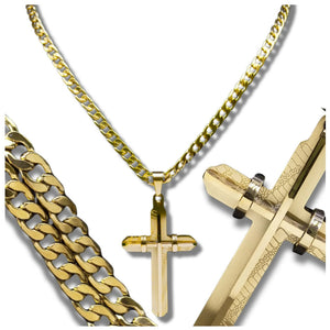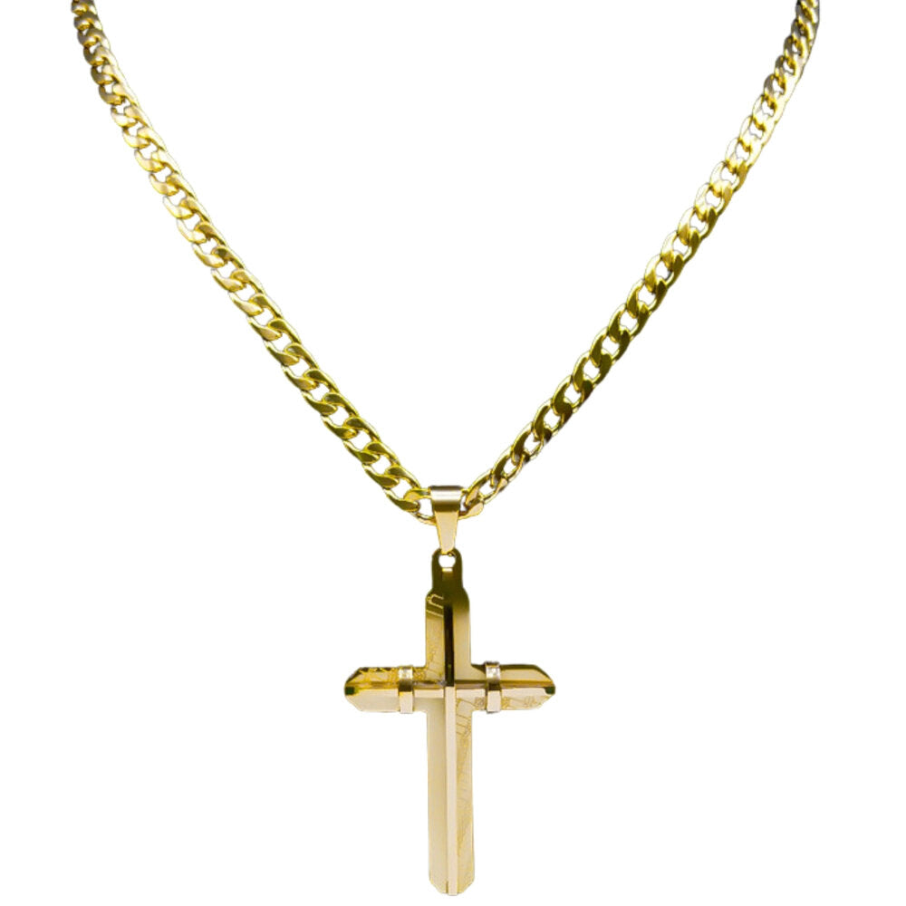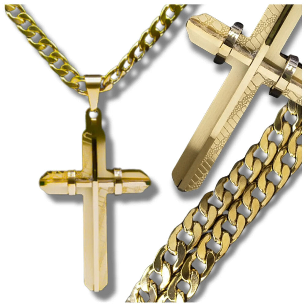 Vīriešu un sieviešu krusta kulons, zelta krāsā, ķirurģiskais tērauds
