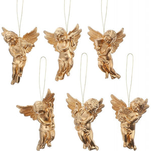 Šis piekaramo rotājumu komplekts piešķirs jūsu Ziemassvētku eglītei īpašu šarmu. Komplektā ietilpst seši zelta krāsas eņģeļi, kas lieliski papildinās jūsu svētku interjeru.