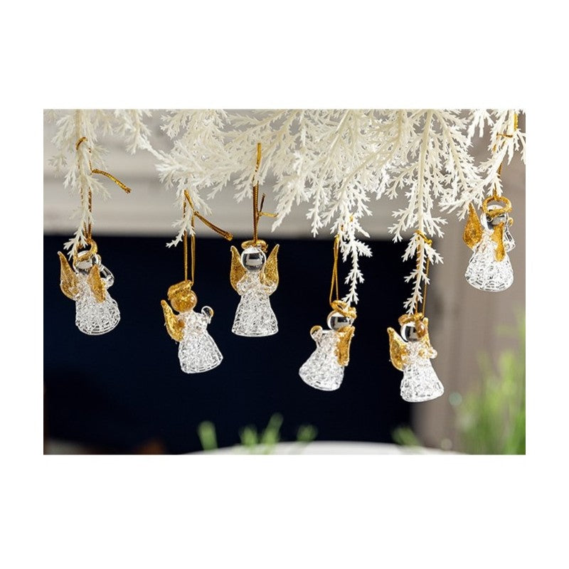Šis Ziemassvētku rotājumu komplekts "Eņģeļi" piešķirs jūsu Ziemassvētku eglītei eleganci un svētku noskaņu. Komplektā ietilpst seši mini Ziemassvētku eglīšu rotājumi, kas izgatavoti no caurspīdīga stikla, kas ir gan elegants, gan mūžīgs.