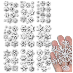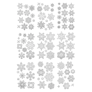 Iepazīstinām ar 9 lapu mirdzošu sniegpārsliņu uzlīmju komplektu, kurā ir 91 dekoratīva uzlīme. Šis komplekts ir lieliski piemērots mājas dekorēšanai ziemā un Ziemassvētkos.