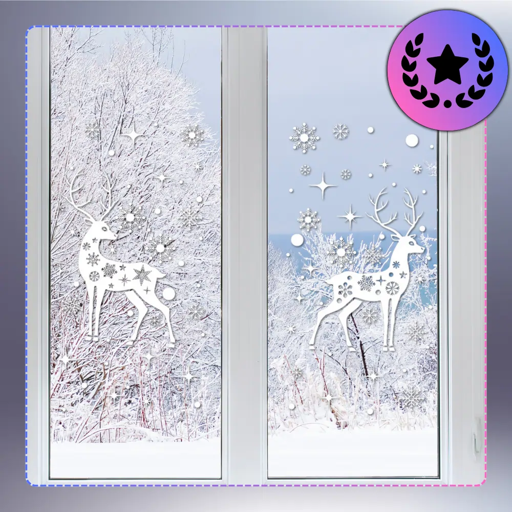 Šis Ziemassvētku uzlīmju komplekts, kas sastāv no divām loksnēm, ir lieliski piemērots logu, spoguļu vai citu stikla virsmu dekorēšanai svētku laikā.