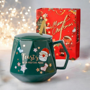 Šī krūze ir lieliska izvēle kafijas vai tējas cienītājiem, kas meklē svētku dizainu. Komplektā ietilpst vāks un karote, padarot to ne tikai stilīgu, bet arī praktisku.
