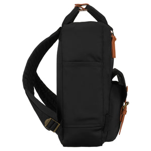 Stilīga un funkcionāla sieviešu pilsētas mugursoma, kas izgatavota no mākslīgās ādas un poliestera, apvienojot melnu un brūnu krāsu. Lieliski piemērota ikdienas lietošanai, darbam vai mācībām - ērti ietilpina A4 formāta dokumentus un klēpjdatoru.