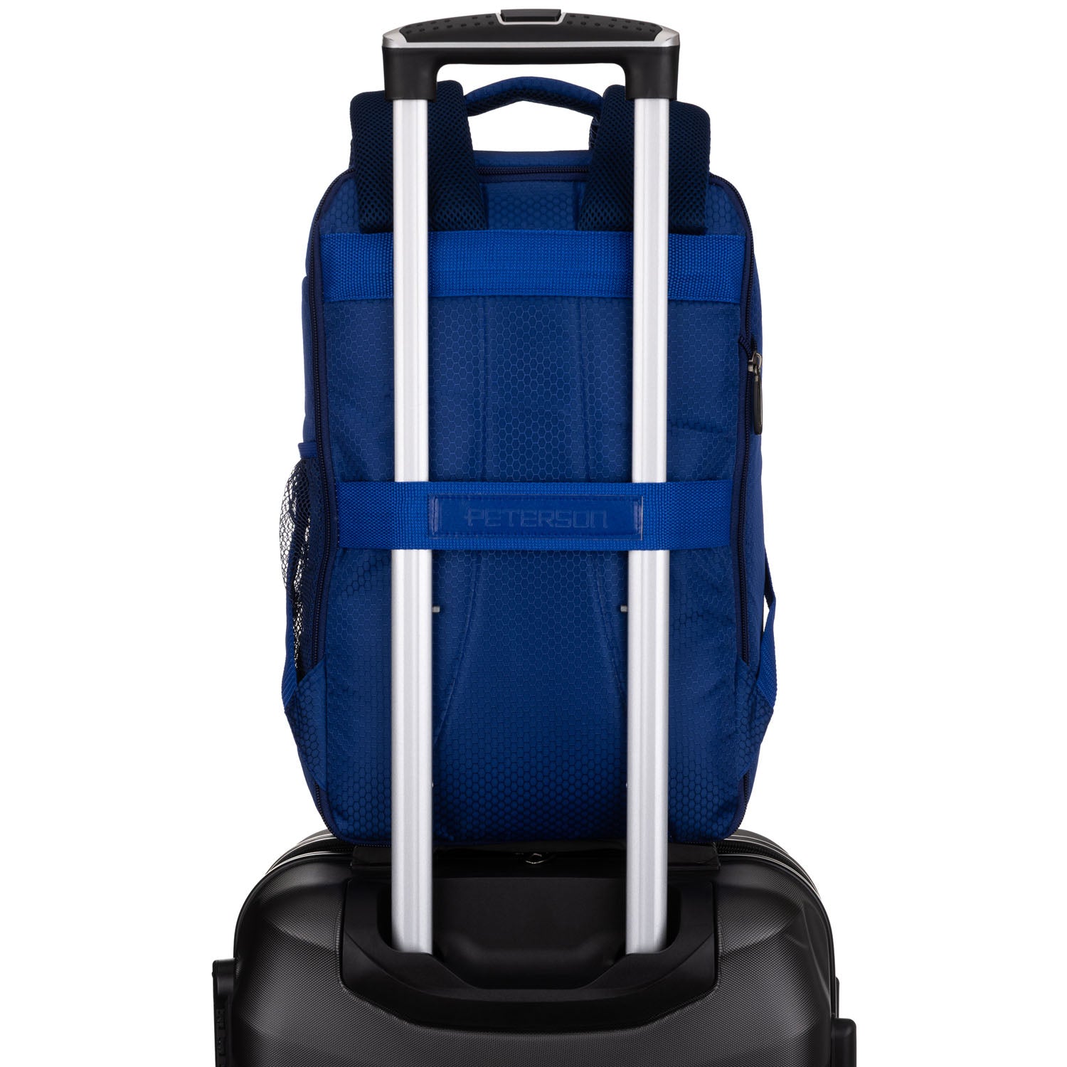 Peterson sieviešu tumši zilā mugursoma ir praktiska un stilīga izvēle ikdienas lietošanai. Izgatavota no izturīga poliestera, tā ir lieliski piemērota gan darbam, gan atpūtai pilsētā un ērti ietilpina A4 formāta dokumentus.
