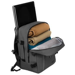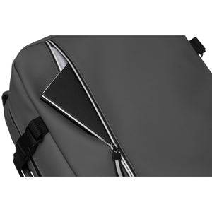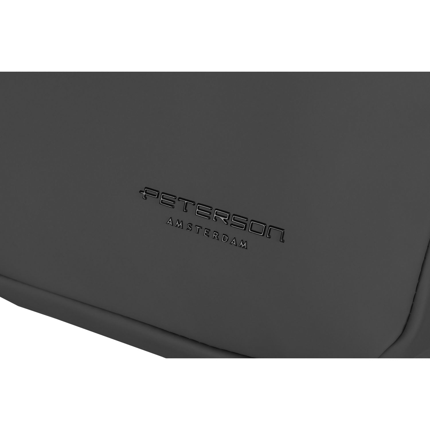 Peterson tumši pelēka liela mugursoma ar nodalījumiem, kas lieliski piemērota ikdienas lietošanai.