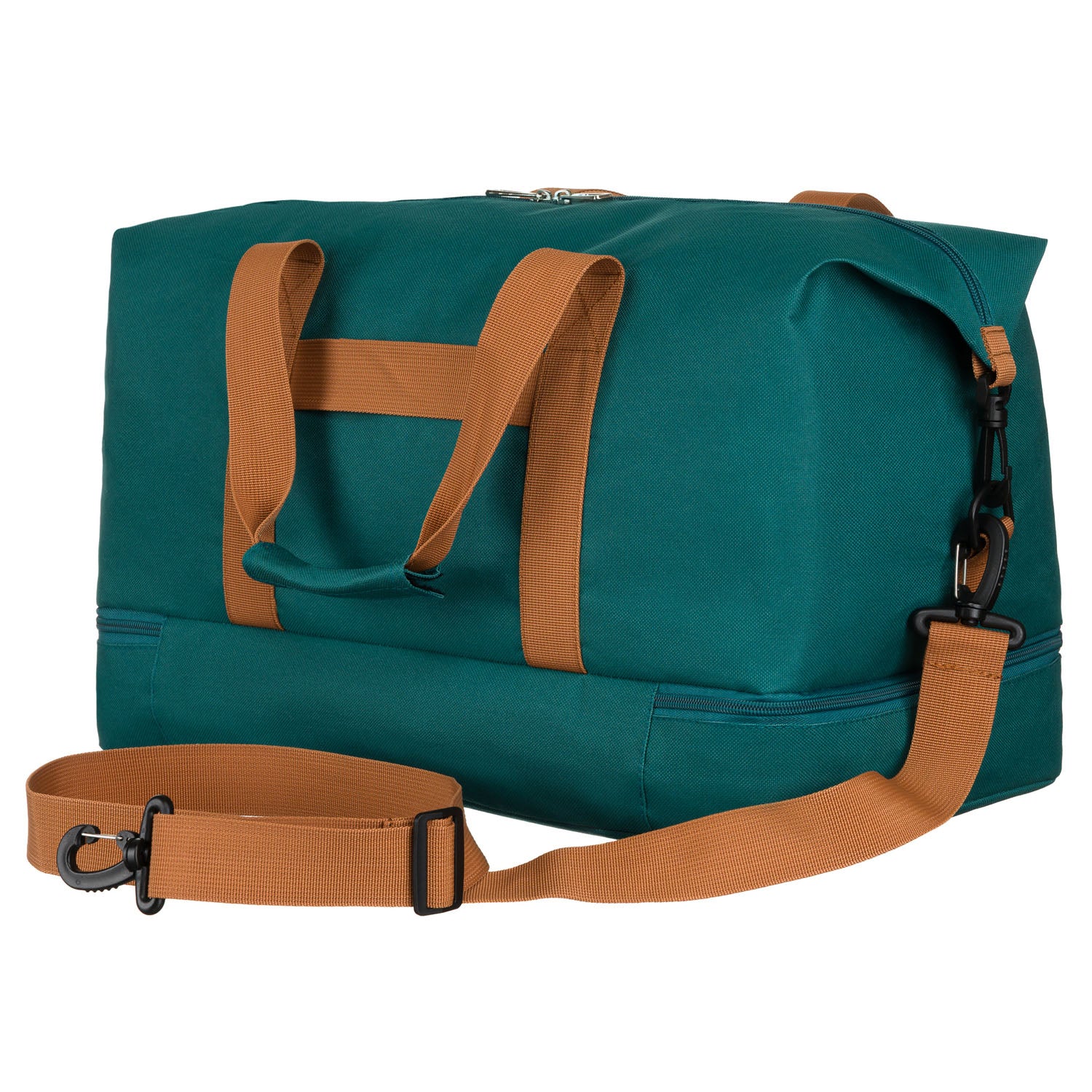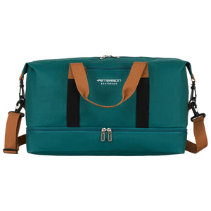 Lielā tirkīza krāsas Peterson rokassoma ir lieliska izvēle ceļojumiem, nodrošinot komfortu un stilu.