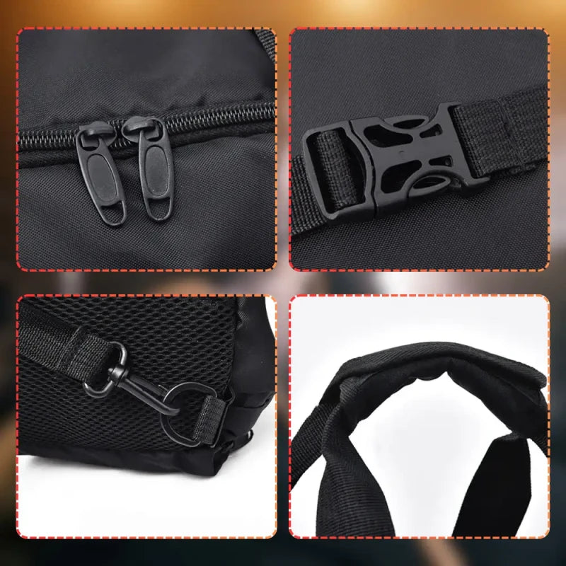 ✅ Mugursomas rokturi ir paslēpti aizmugurējā kabatā — somu var nēsāt uz muguras