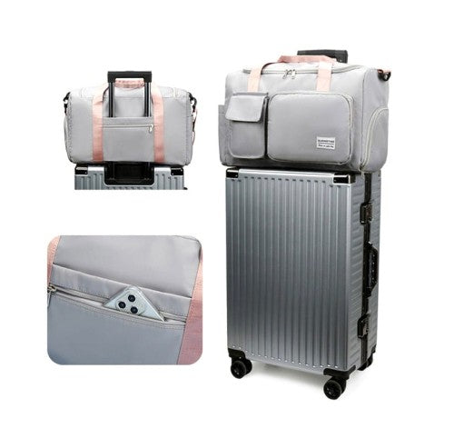 • Ietilpīgas kabatas: Lielas kabatas priekšpusē nodrošina papildu vietu nelieliem priekšmetiem, un sānu kabata ir ideāli piemērota apavu glabāšanai.