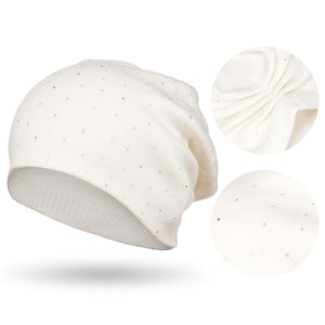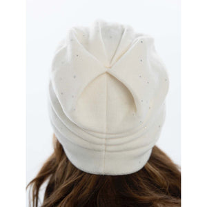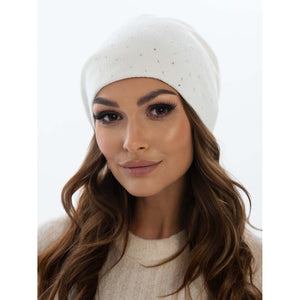 Silti balta sieviešu ziemas cepure, kas izgatavota no mākslīgās ādas un vilnas maisījuma - ērtai ikdienas valkāšanai aukstajā sezonā.