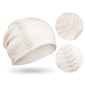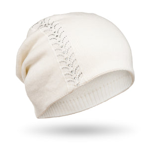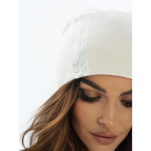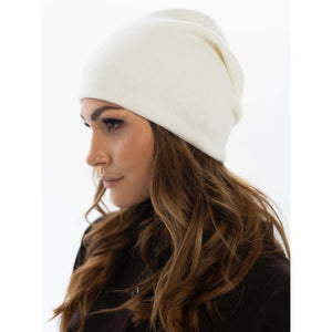 Silti balta sieviešu ziemas cepure, kas izgatavota no mākslīgās vilnas maisījuma - ērtai ikdienas valkāšanai aukstajā sezonā.