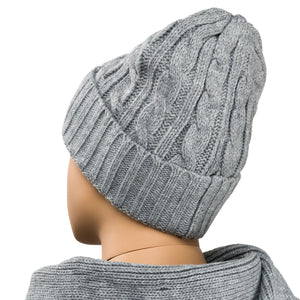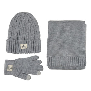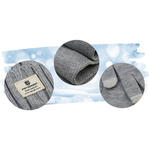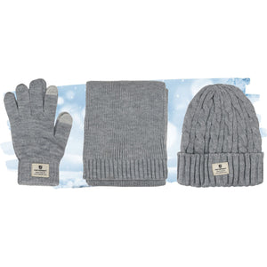 Peterson gaiši pelēka šalle, cepure un cimdi – stilīga izvēle rudens un ziemas sezonai.
