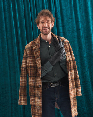 Šie vīriešu cimdi ir izgatavoti no augstas kvalitātes īstas ādas ar vieglu spīdumu un smalki graudainu tekstūru. Tie ir ne tikai stilīgi, bet arī funkcionāli.