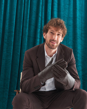 Šie vīriešu cimdi ir izgatavoti no augstākās kvalitātes īstas ādas, kurai ir mīksts spīdums un smalka, graudaina tekstūra. Cimdiem ir ērta aizdare, kas nodrošina perfektu piegulšanu.