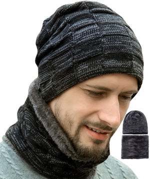 Šis divdaļīgais vīriešu komplekts ir lieliska izvēle aukstajai sezonai. Komplekts ir izolēts ar mīkstu kažokādu, kas nodrošina siltumu un komfortu. Universālais raksts labi piestāvēs dažādu krāsu vīriešu jakām un mēteļiem. Pateicoties elastībai, cepure nespiež uz galvas un ir viegli uzvelkama.