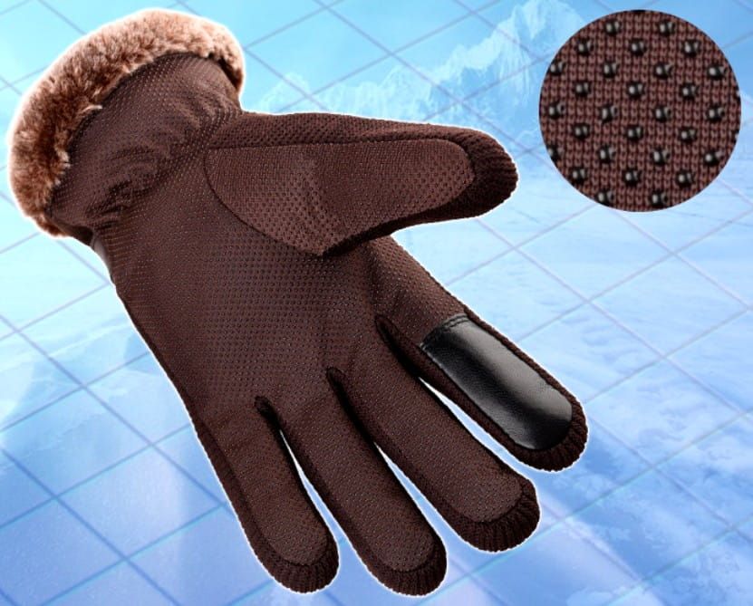 Cimdiem ir regulējama siksna ar sprādzi, kas ļauj tos pielāgot plaukstas locītavai, nodrošinot komfortu un siltumu. Mākslīgā kažokāda iekšpusē nodrošina papildu siltumizolāciju.