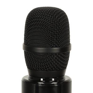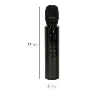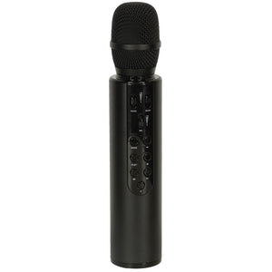 Melnais bezvadu karaoke mikrofons atbalsta populārus audio formātus, piemēram, MP3, WMA un WAV. Pateicoties darbības diapazonam līdz 10 metriem un Bluetooth tehnoloģijai, lietotājs var brīvi kustēties dziedāšanas laikā. Iebūvētais 2000 mAh akumulators nodrošina līdz pat 6 stundām nepārtrauktas darbības. Mikrofonam ir AUX ieeja un atmiņas kartes slots , kas palielina tā funkcionalitāti. Pogas uz korpusa ļauj viegli pielāgot iestatījumus un mainīt dziesmas. Komplektā ietilpst USB kabelis un 3,5 mm Jack kabelis.