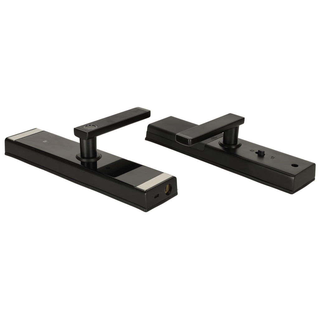 Elektroniskā slēdzene ir mūsdienīgs risinājums, kas nodrošina augstu drošības līmeni un lietošanas ērtumu. To var atvērt piecos veidos: ar pirkstu nospiedumu, paroli, bezkontakta karti, lietotni un atslēgu. Slēdzeni darbina četras AAA baterijas (nav iekļautas komplektā). Roktura iekšpusē ir slēdzene , kas neļauj atvērt durvis no ārpuses, kad tās ir ieslēgtas. Ierīces atmiņā var saglabāt līdz 150 parolēm un līdz 120 pirkstu nospiedumiem. Slēdzeni var vadīt attālināti, izmantojot lietotni Tuya , kas ļauj attālināti vadīt ierīci. Lietotnē ir iekļautas tādas funkcijas kā:
