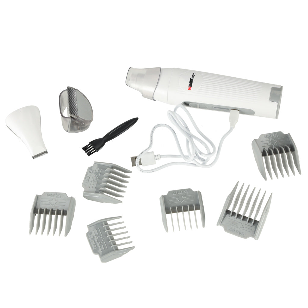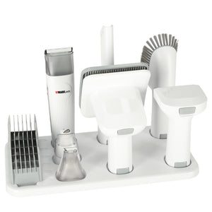 Mājdzīvnieku apmatojuma putekļsūcējs ir obligāta lieta katram kaķa vai suņa īpašniekam. Ar tā palīdzību būs daudz vieglāk kopt savu četrkājaino draugu, kā arī tīrīt apmatojumu no mēbelēm vai paklājiem. Putekļsūcējam ir četras maināmas uzgaļi: pavilnas noņemšanas birste, apmatojuma ķemmēšanas birste, plata un šaura sūkšanas uzgalis. Sūkņa tilpums ir 1,5 litri , kas ļauj ilgstoši sūkt putekļus, bieži neiztukšojot tvertni. Turklāt komplektā ietilpst matu griezējs ar sešām uzgaļiem (3 mm, 6 mm, 9 mm, 12 mm, 18 mm un 23 mm), kā arī trimmeris un nagu vīle , kas ļauj vispusīgi rūpēties par sava mājdzīvnieka izskatu. Trīs sūkšanas jaudas līmeņi ļauj pielāgot putekļsūcēju apmatojuma tipam. Komplektā ietilpst praktisks statīvs , kas atvieglo uzgaļu un piederumu sakārtošanu.