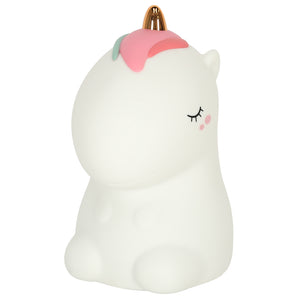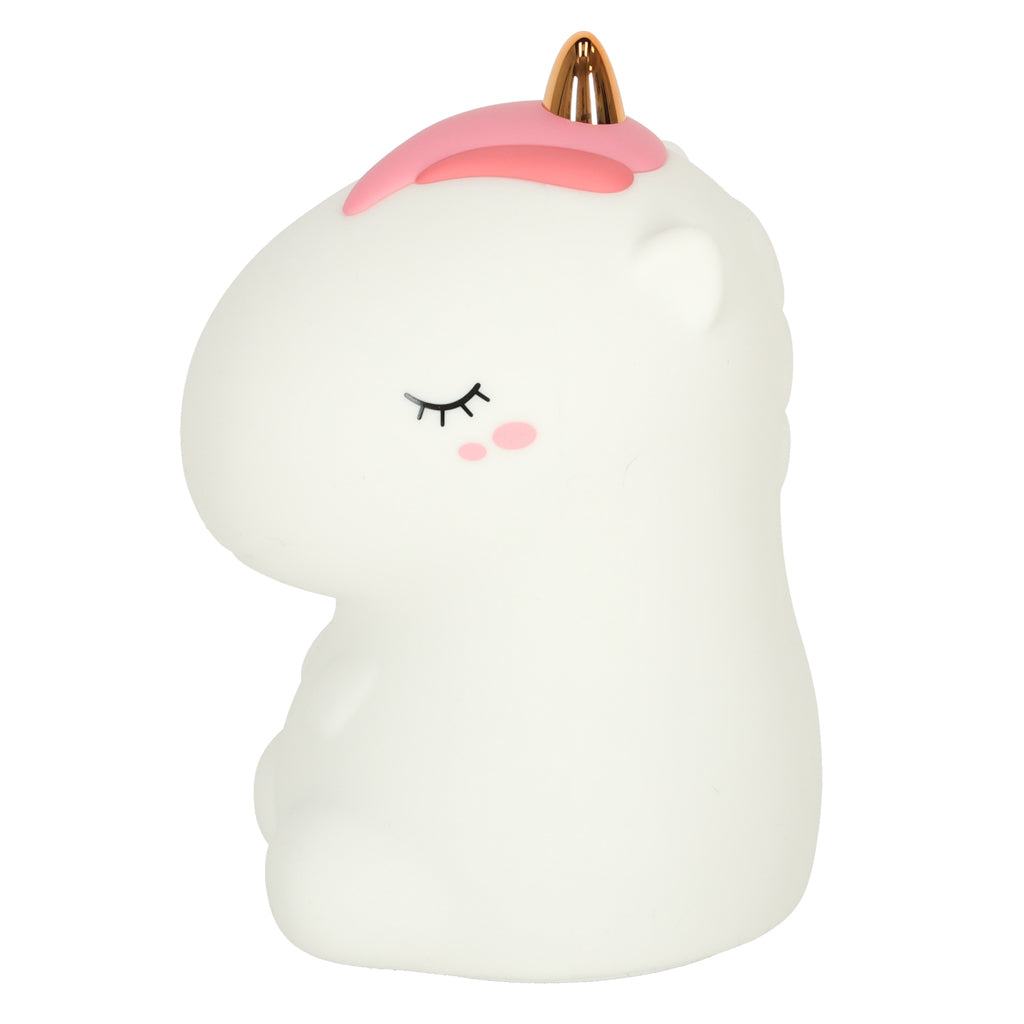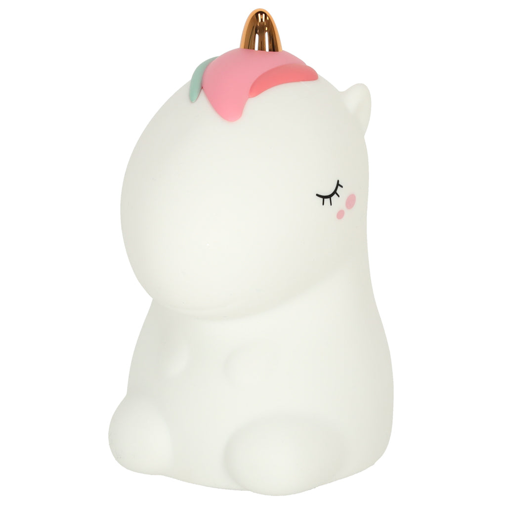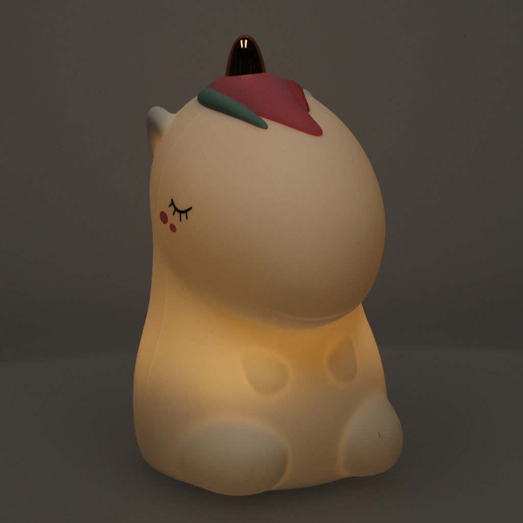 Mīkstā, silikona naktslampiņa vienradža formā ir ne tikai burvīgs rotājums bērnu istabai , bet arī praktisks aksesuārs. Pateicoties lampas izstarotajai maigajai gaismai, bērni, iemiegot, jutīsies droši. Lampai ir taimeris, kas to automātiski izslēdz pēc stundas , taupot enerģiju un nodrošinot optimālu gulētiešanas laiku. Uzlādēts akumulators ļauj lampai darboties 9 līdz 10 stundas (atkarībā no izvēlētā režīma). Lampas darbība ir ārkārtīgi vienkārša un intuitīva – vienkārši pieskarieties tai, lai pārslēgtos starp dažādiem apgaismojuma režīmiem: silti balta gaisma, krāsu mainoša gaisma (RGB), izvēlēta statiska krāsa vai izslēgta. Lampu var uzlādēt ar komplektā iekļauto USB kabeli.