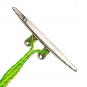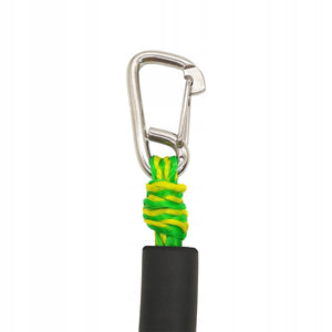 - Izturīgi gali — cilpa un karabīne: Viens virves gals beidzas ar izturīgu 304 nerūsējošā tērauda karabīni, kas ir izturīga pret sālsūdeni. Otram galam ir izturīga cilpa, kas ļauj to ātri piestiprināt pie mietiņa, stieņa vai pilona.