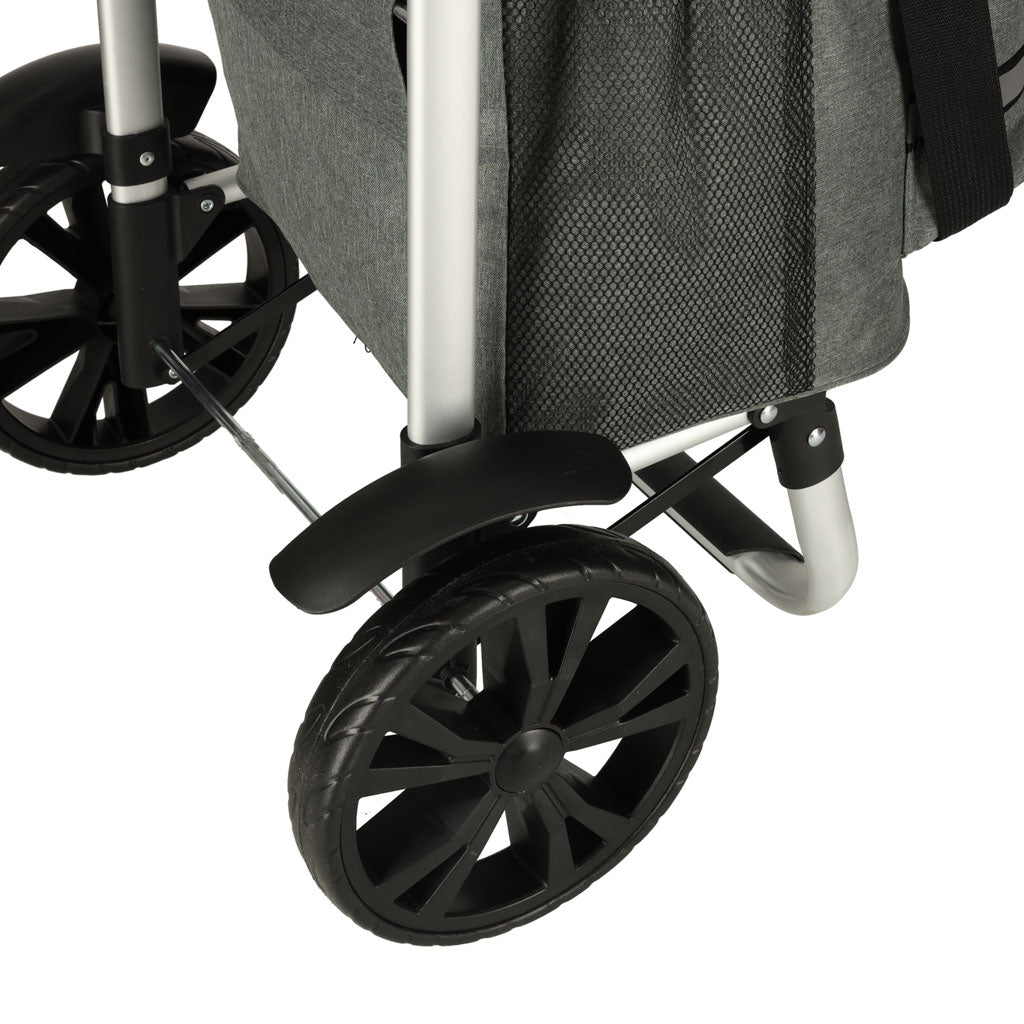 Iepirkumu ratiņi uz riteņiem noderēs arī ārpus mājas. Tajos var droši pārvadāt pārtiku vai nepieciešamās lietas – to ietilpība ir aptuveni 40 litri, un tie var izturēt svaru līdz 30 kilogramiem . Šādi ietilpīgi ratiņi ir lieliski piemēroti kempinga braucienam vai atvaļinājumam vasarnīcā. Soma ir izgatavota no ūdensizturīga poliestera materiāla , kas ir mazāk pakļauts plīsumiem. Papildu somas priekšrocība ir atstarojoši elementi, kas palielina redzamību naktī.
