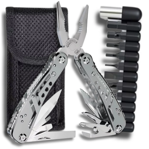H4 daudzfunkcionālās knaibles ir lieliska izvēle tiem, kas meklē uzticamu un daudzpusīgu instrumentu. Izgatavotas no augstas kvalitātes nerūsējošā tērauda, šīs knaibles piedāvā pat 24 funkcijas vienā instrumentā, padarot tās ideāli piemērotas dažādām aktivitātēm, piemēram, kempingam, makšķerēšanai, pārgājieniem vai mājas remontam. Komplektā ietilpst 11 maināmi uzgaļi un magnētisks savienotājs ērtai lietošanai. Izturīga somiņa ar jostas cilpu atvieglo šī instrumenta nēsāšanu līdzi. Kompaktie izmēri nodrošina, ka knaibles būs ērtas gan lietošanā, gan glabāšanā.