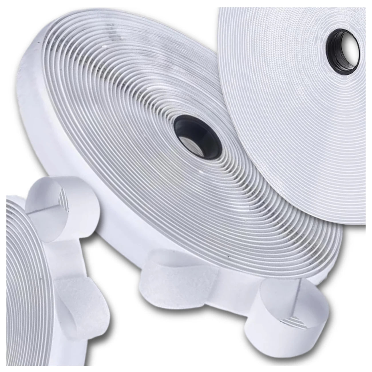 Līmlente, balta, 5 m, 2,5 cm, ar āķīšiem un cilpām