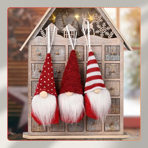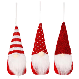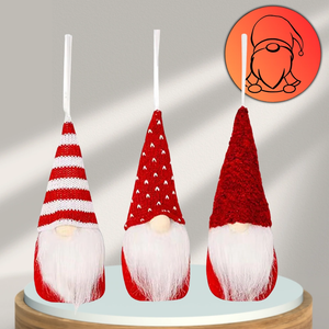 Šajā komplektā ir trīs Ziemassvētku rūķu piekariņi, kas lieliski papildinās jūsu svētku dekoru. Katra rūķa izmērs ir 15x6 cm, un tam ir sarkana cepure ar dažādiem rakstiem.