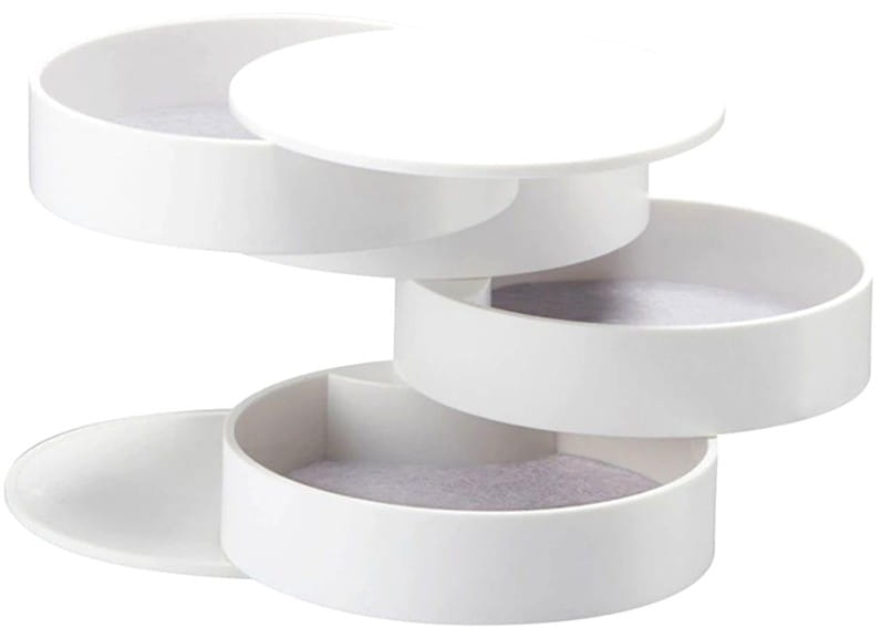 Kastīti var atlocīt, kā parādīts fotoattēlos, tāpēc tā aizņem maz vietas. Tā ir izgatavota no augstas kvalitātes plastmasas, un iekšpuse ir izklāta ar mīkstu filca materiālu, kas aizsargā jūsu rotaslietas no skrāpējumiem.