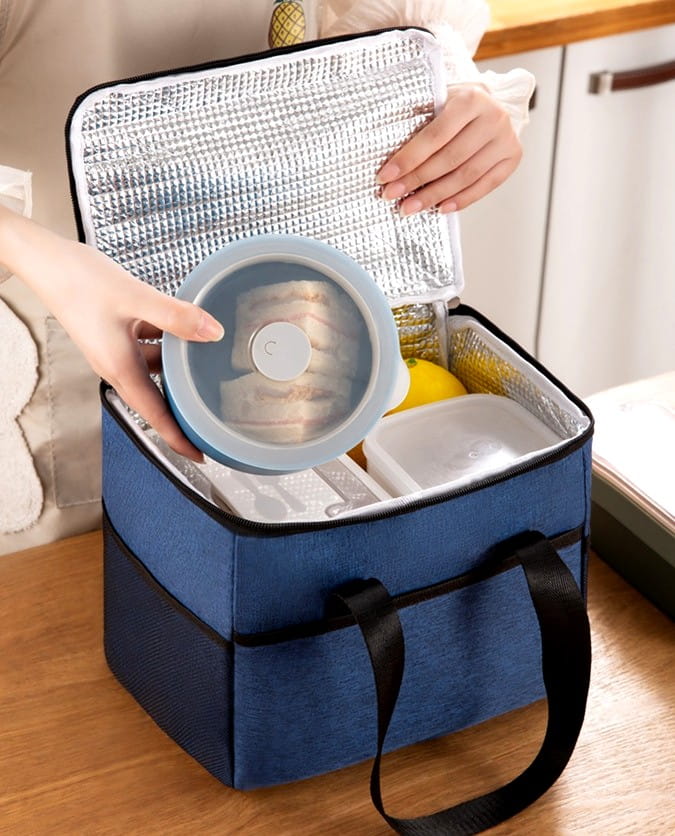 Krāsa un unikālas iezīmes: pelēkais dizains piešķir eleganci, un kaste ir traipu un ūdens izturīga. Tā aizveras ar ērtu rāvējslēdzēju, tāpēc jūsu pārtika būs drošībā.