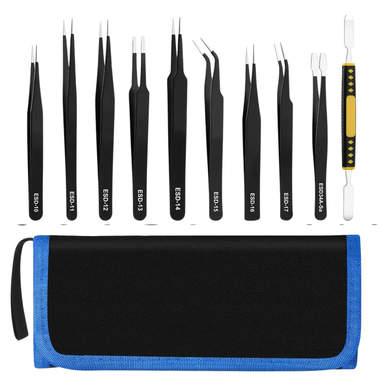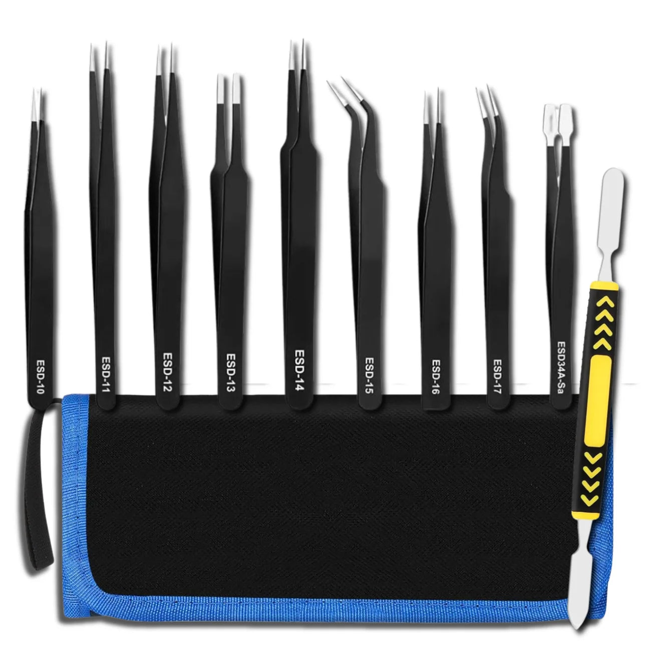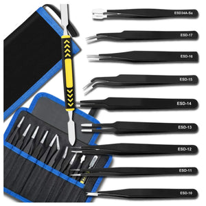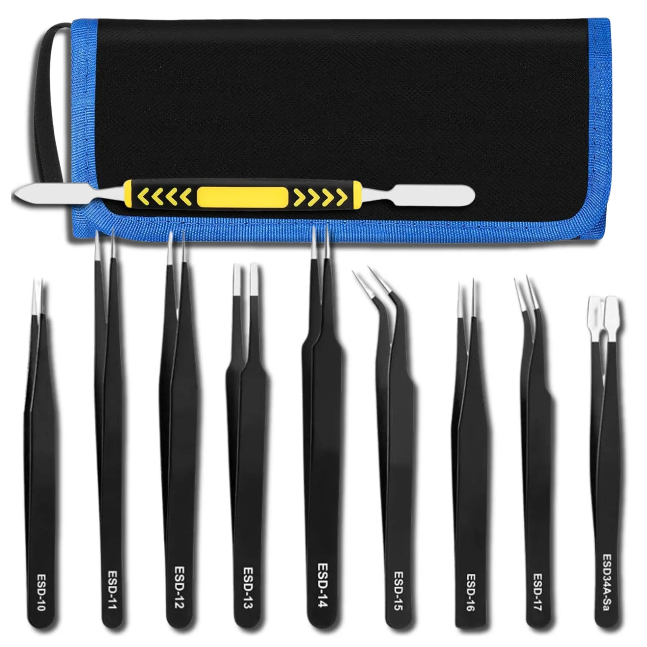 - Komplektā ietilpst 9 dažādas pincetes, kas ļauj veikt dažādus precizitātes uzdevumus.