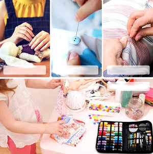 • Iepakojuma saturs: Papildus krāsainiem diegiem un adatām komplektā ietilpst arī pogas universālās krāsās un palielināmais stikls, kas palīdzēs veikt precīzas korekcijas.