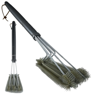 - Birste sastāv no trim 15 cm garām nerūsējošā tērauda birstēm, kas nodrošina 360° tīrīšanas leņķi.