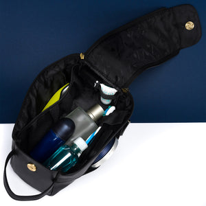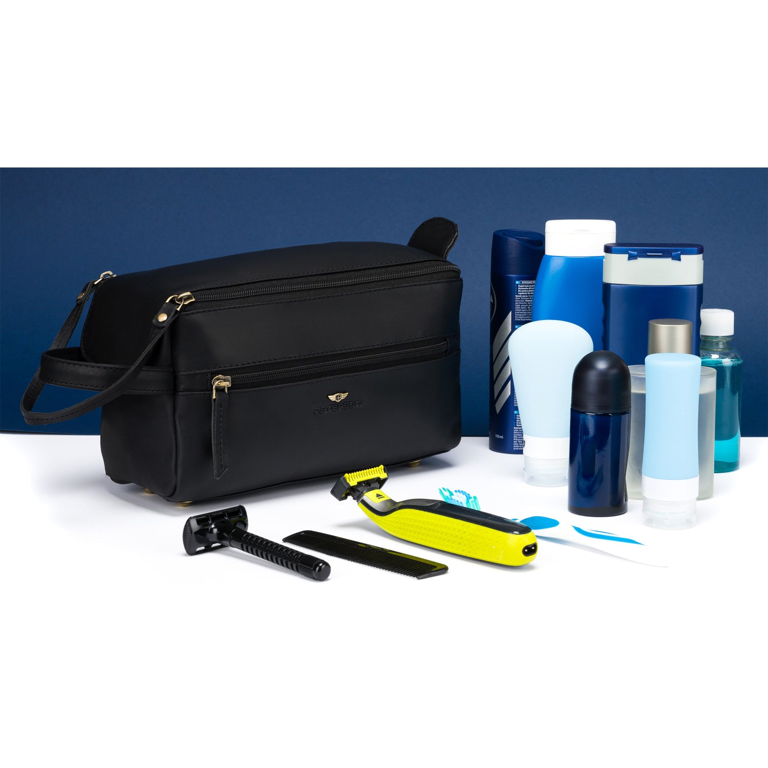 Peterson vīriešu kosmētikas soma no dabīgas ādas, melnas krāsas, ar rāvējslēdzēju.