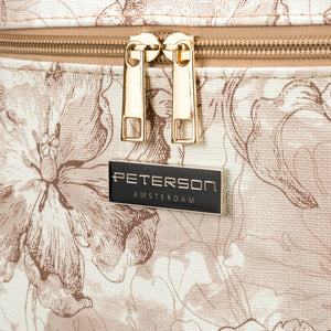 Peterson bēša sieviešu rokassoma ar rāvējslēdzēju, izgatavota no izturīga materiāla.