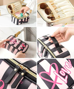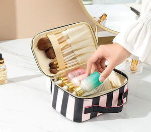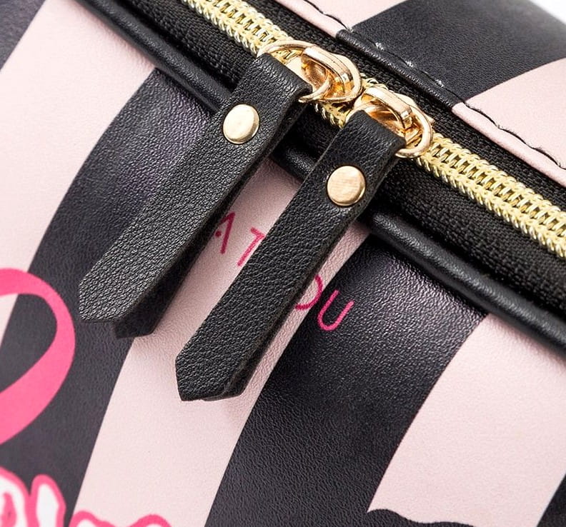 - Ērts un ietilpīgs, ar speciāliem turētājiem kosmētikai, otām vai citiem priekšmetiem.