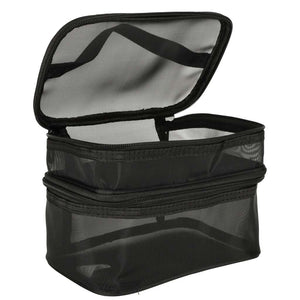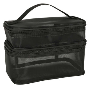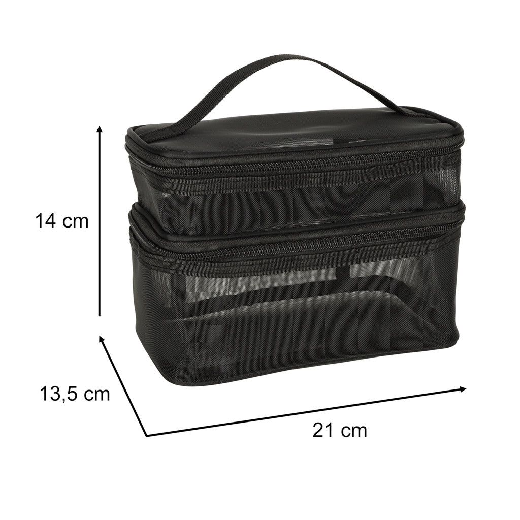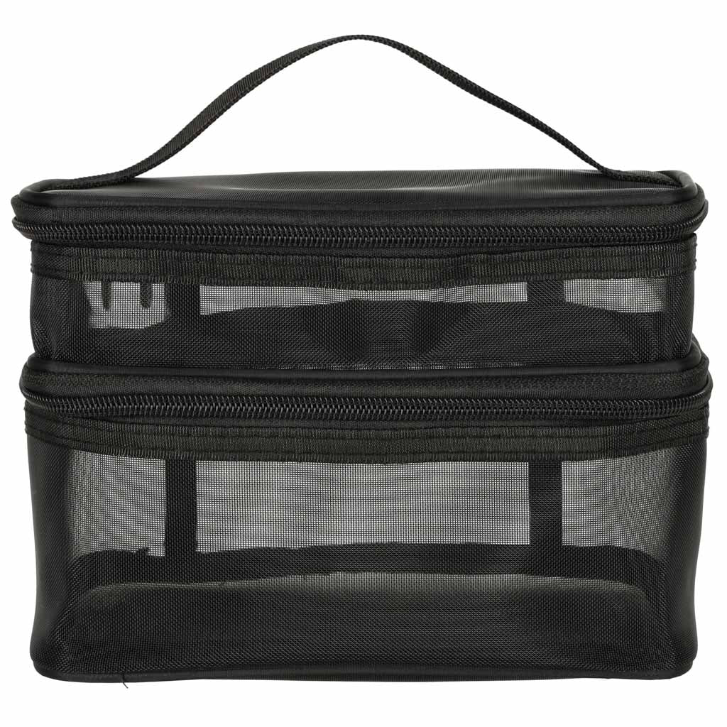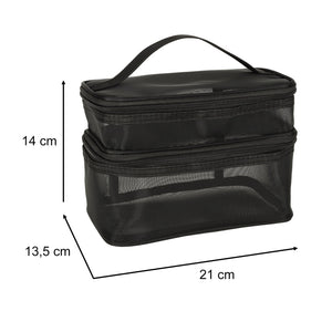 Šī divlīmeņu melnā kosmētikas soma ir lieliska izvēle ceļojumiem, jo tajā ērti ietilpst visa jūsu kosmētika. Somai ir divi nodalījumi ar rāvējslēdzēju: viens mazāks un viens lielāks, lai jūs varētu ērti sakārtot savas mantas.