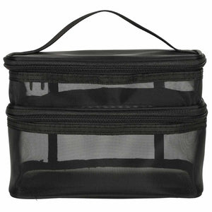 Izgatavota no sieta materiāla, šī kosmētikas soma ļauj ātri un vienkārši atrast nepieciešamās lietas. Praktiskais rokturis nodrošina ērtu pārnēsāšanu.