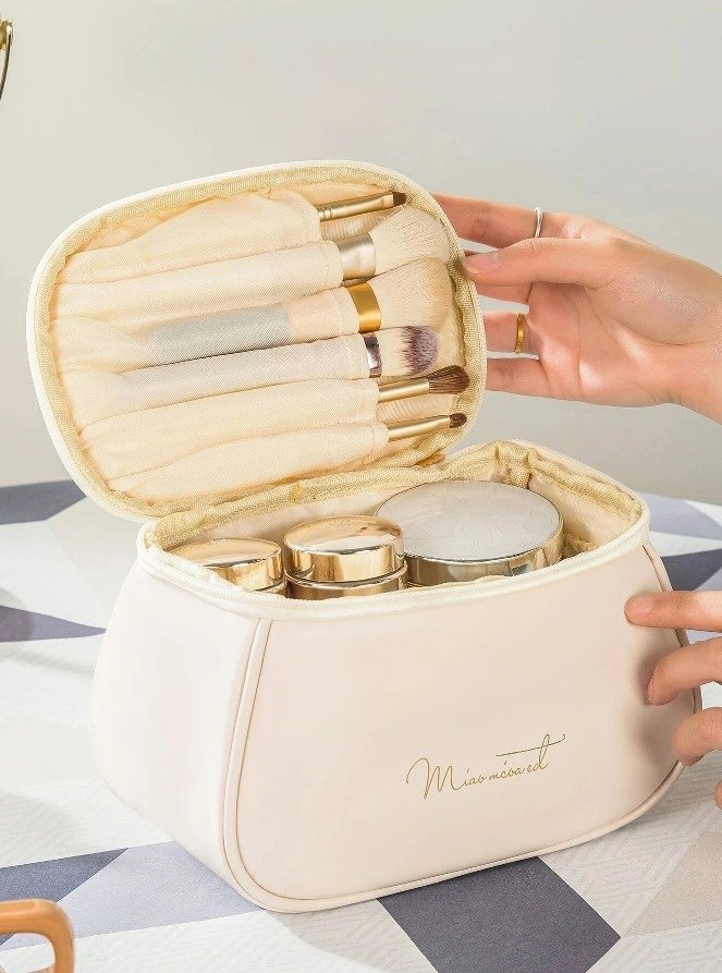 Eleganta balta eko ādas kosmētikas somiņa , kas lieliski piemērota gan ikdienas lietošanai, gan ceļojumiem.