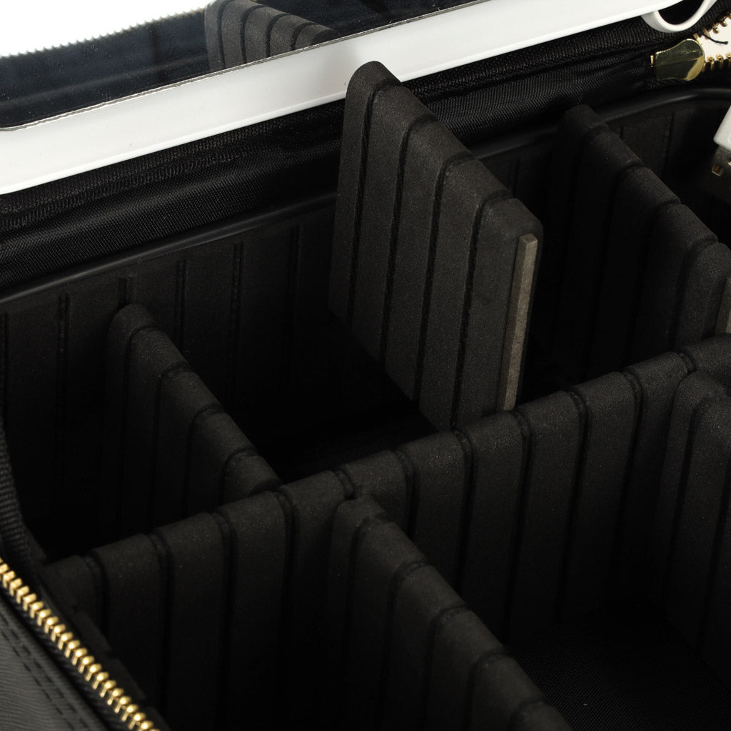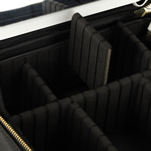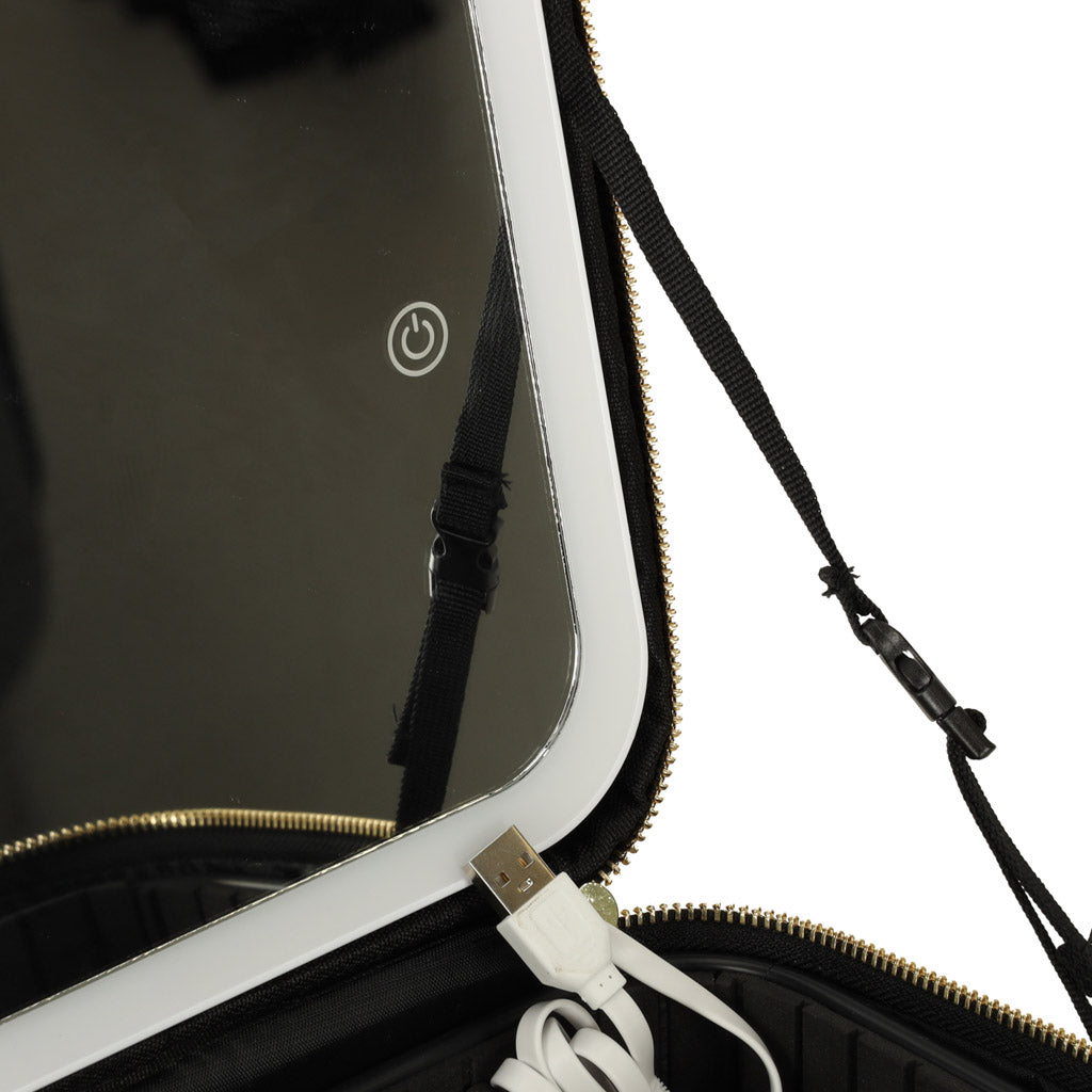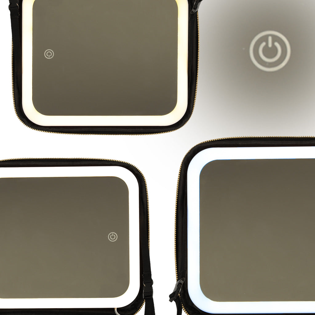 Šī kosmētikas soma ar spoguli ir neaizstājama ikvienai sievietei, īpaši ceļojumu laikā. Iebūvētais spogulis ar 72 LED diodēm nodrošina, ka grimu var uzklāt jebkurā situācijā. Diodes darbina 2000 mAh akumulators, kas ir iekļauts komplektā. Regulējami nodalījumi ļauj ērti sakārtot visu kosmētiku, un komplektā iekļautā kabata otām un USB kabelis LED spuldžu uzlādēšanai nodrošina papildu ērtības.