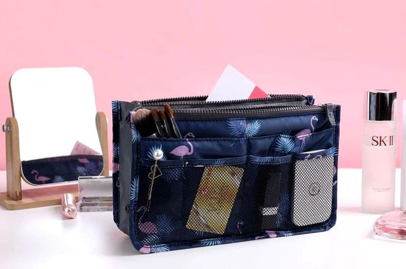 Šī kosmētikas soma ir lieliska izvēle tiem, kas novērtē organizētību un ērtības. Tai ir astoņas ārējās kabatas, no kurām četras ir no neilona un četras ir no sieta. Tās ir ideāli piemērotas maziem priekšmetiem, piemēram, lūpu balzamam, košļājamās gumijas paciņai vai lādētājam.