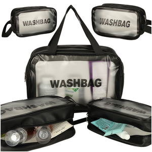 Šis melnais kosmētikas somiņu komplekts ir lieliska izvēle ceļojumiem. Katrai somiņai ir rāvējslēdzējs un ērts rokturis, kas atvieglo tās pārnēsāšanu. Komplektā ietilpst trīs dažādu izmēru kosmētikas somiņas, kas būs ideāli piemērotas visai jūsu kosmētikai.