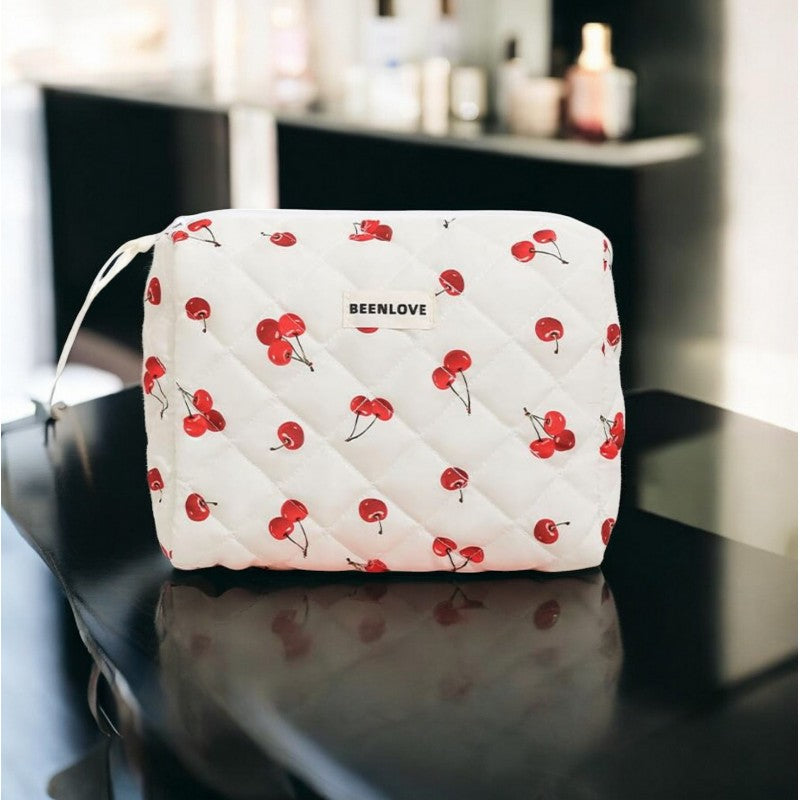 Šis ķiršu raksta kosmētikas maciņš ir ne tikai funkcionāls, bet arī stilīgs, padarot to par lielisku papildinājumu jūsu aksesuāru kolekcijai.