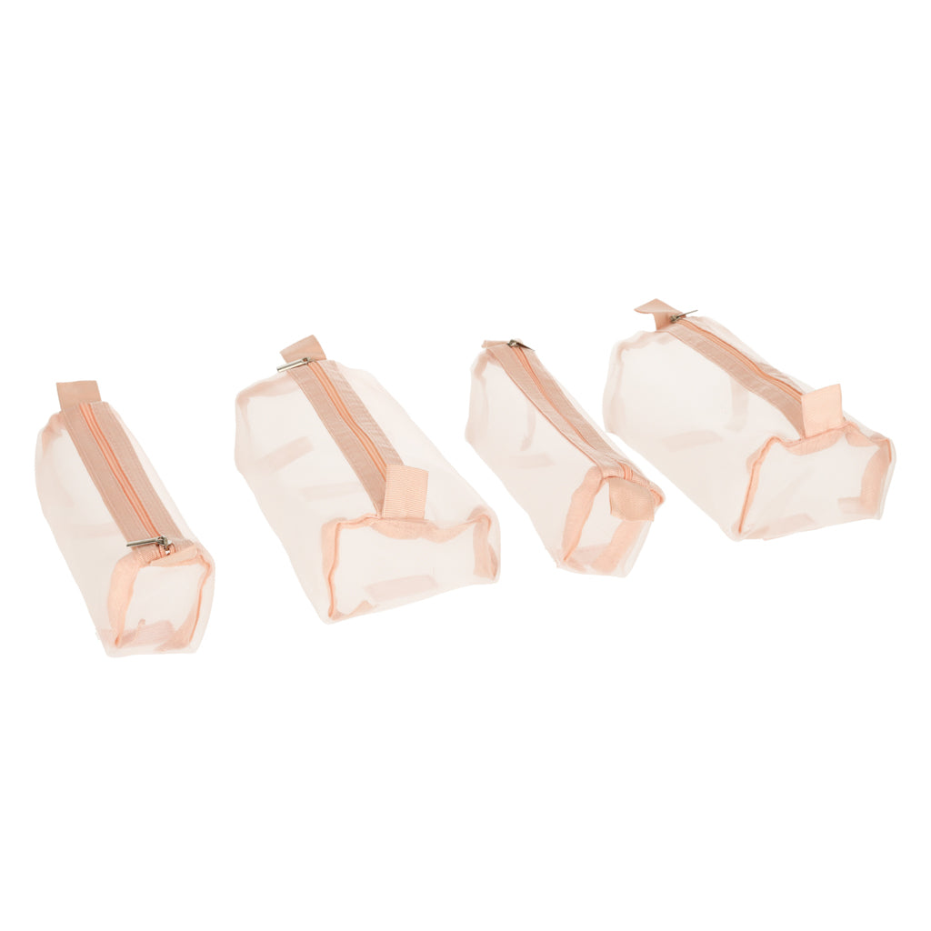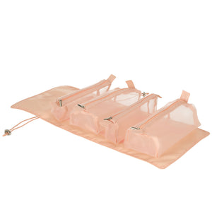Šī rozā salokāmā kosmētikas soma ir lieliska izvēle ceļojumiem. Tai ir četri nodalījumi, divi mazi un divi lieli, visi ar rāvējslēdzējiem. Trīs nodalījumus var izņemt un izmantot atsevišķi, piemēram, somā vai mugursomā. Kosmētikas somu var sarullēt, lai aizņemtu mazāk vietas, un sieta nodalījumi atvieglo nepieciešamo priekšmetu atrašanu.