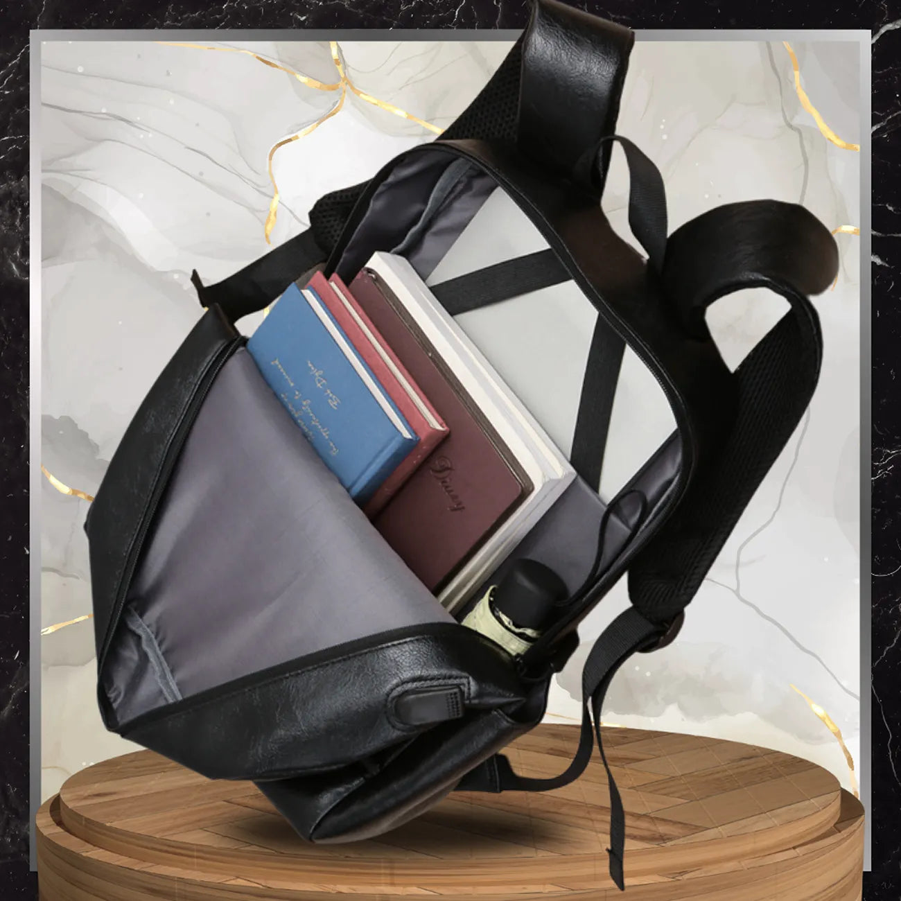 Šī elegantā melnā mugursoma ir lieliska izvēle pilsētas braucieniem. Izgatavota no videi draudzīgas PU ādas, tā ne tikai izskatās stilīgi, bet arī ir videi draudzīga.