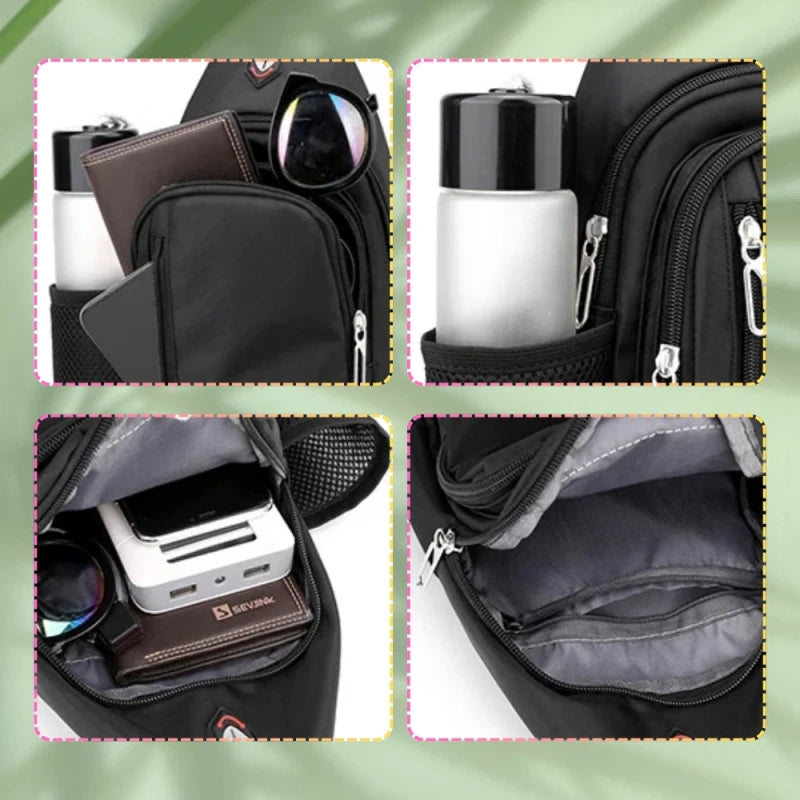Šī vīriešu mugursoma ir lieliska izvēle aktīviem cilvēkiem, kas meklē komfortu un funkcionalitāti. To var nēsāt uz pleca vai jostasvietas atkarībā no vajadzībām.