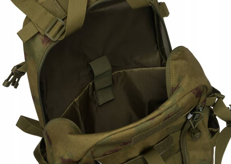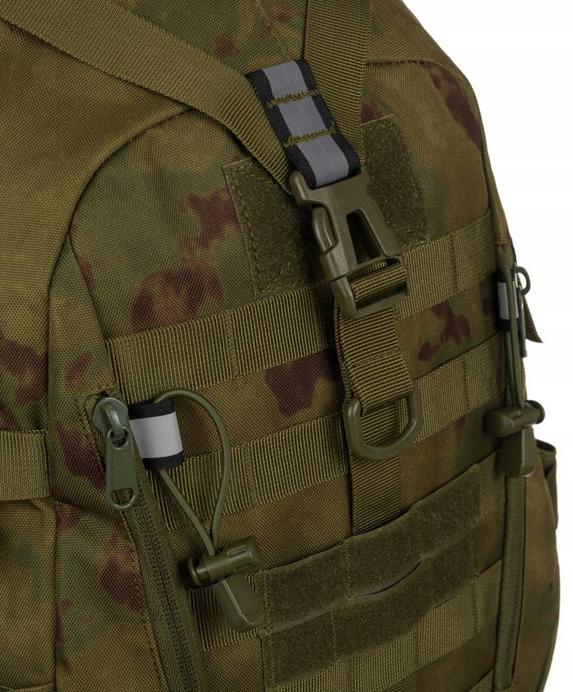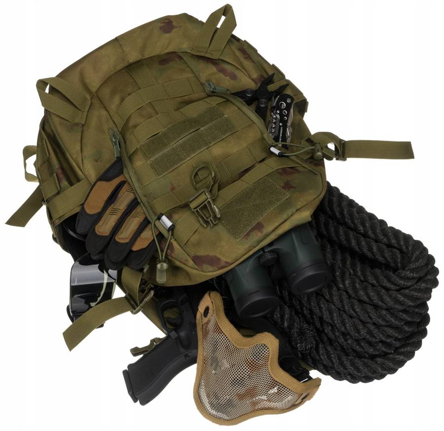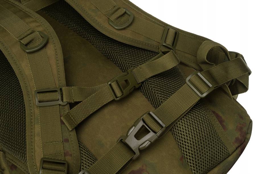 Mugursomas priekšpusē esošās siksnas, kas ir saderīgas ar MOLLE sistēmu, ļauj viegli piestiprināt papildu aprīkojumu, piemēram, pārgājienu nūjas, un izveidot pielāgotu komplektu.