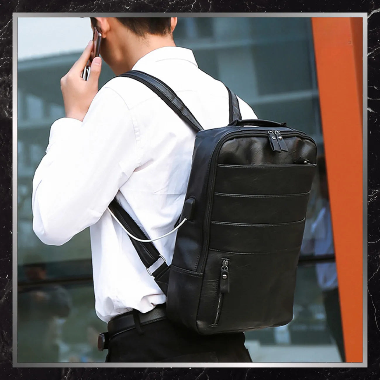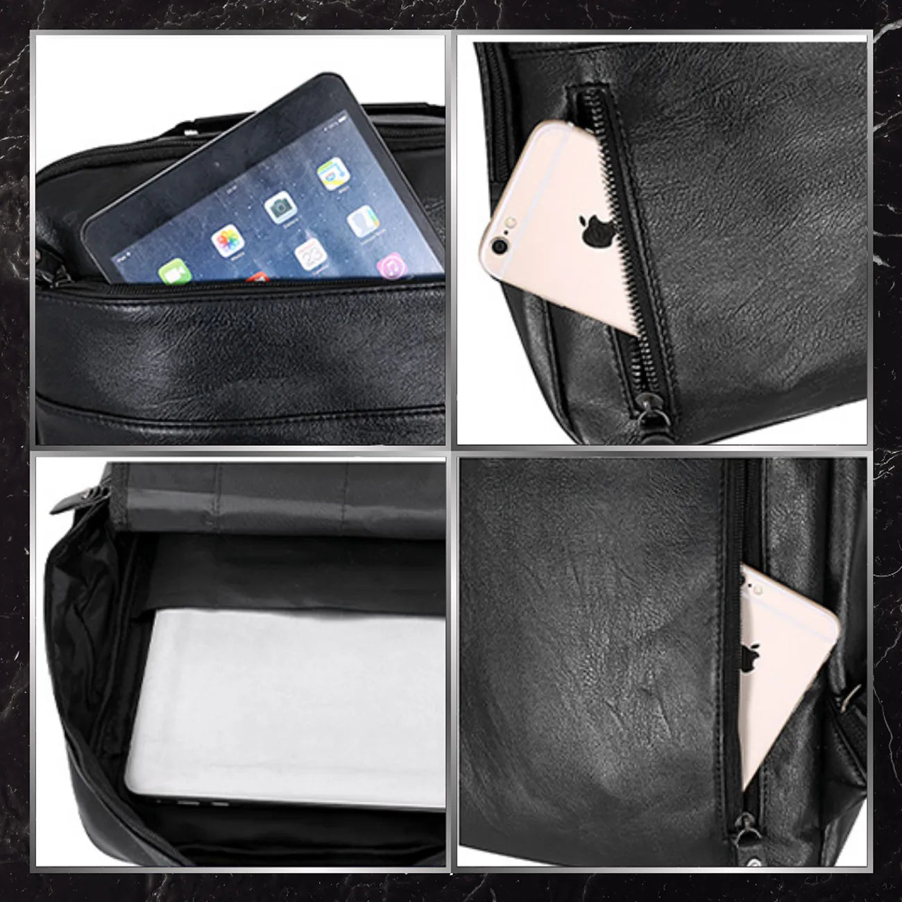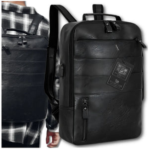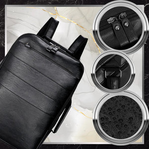 Vīriešu ādas mugursoma, melna, rokas bagāžai